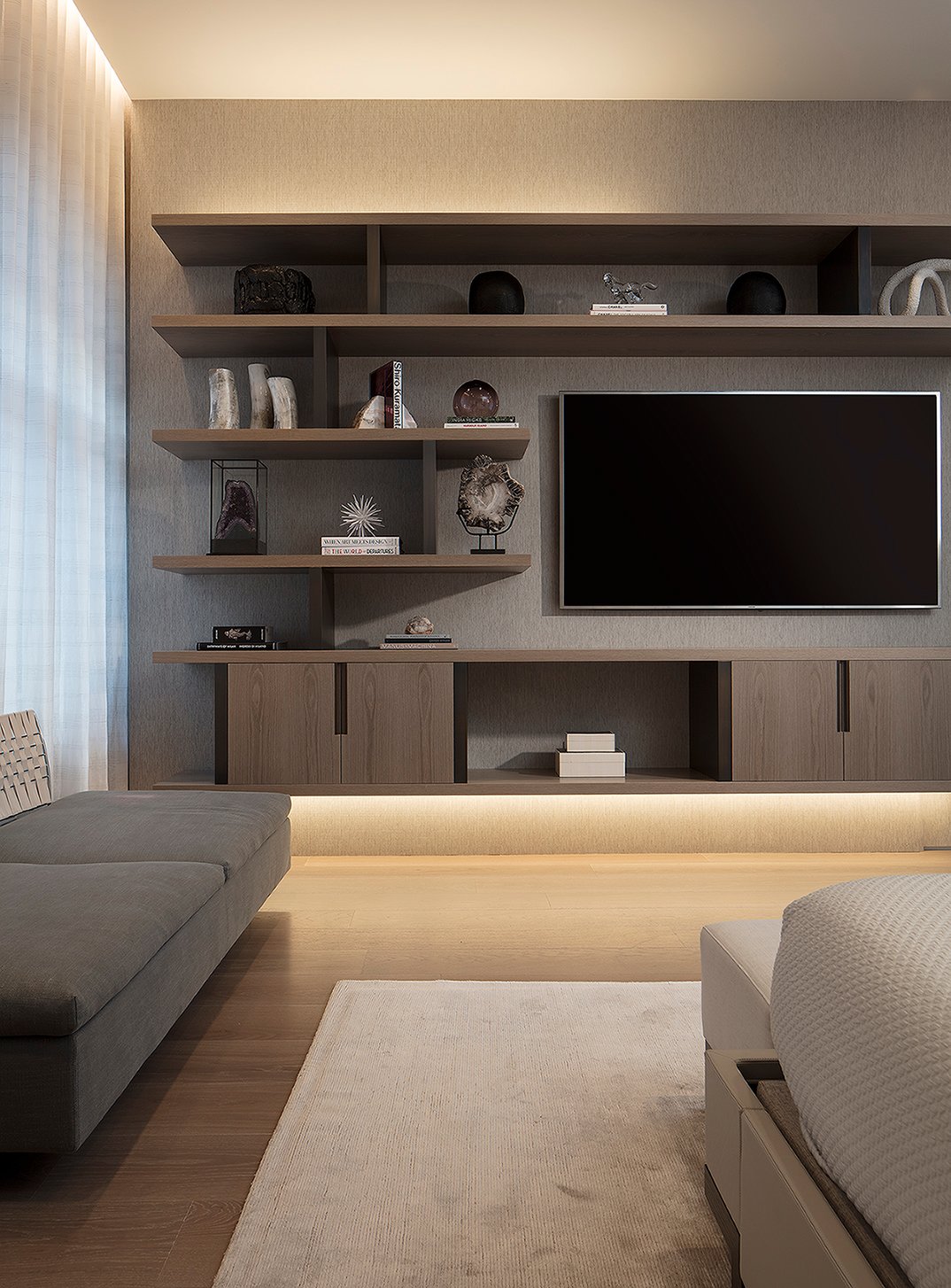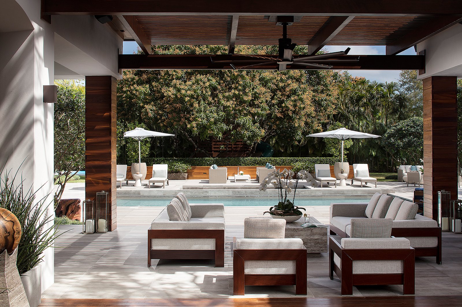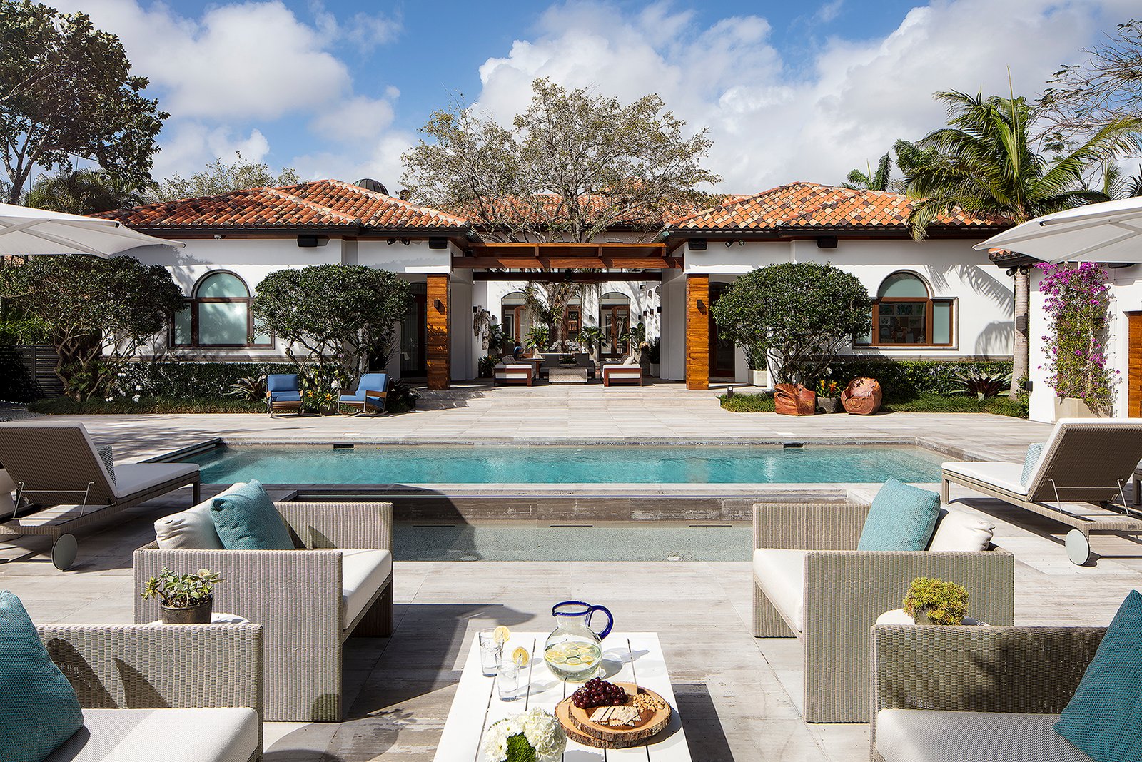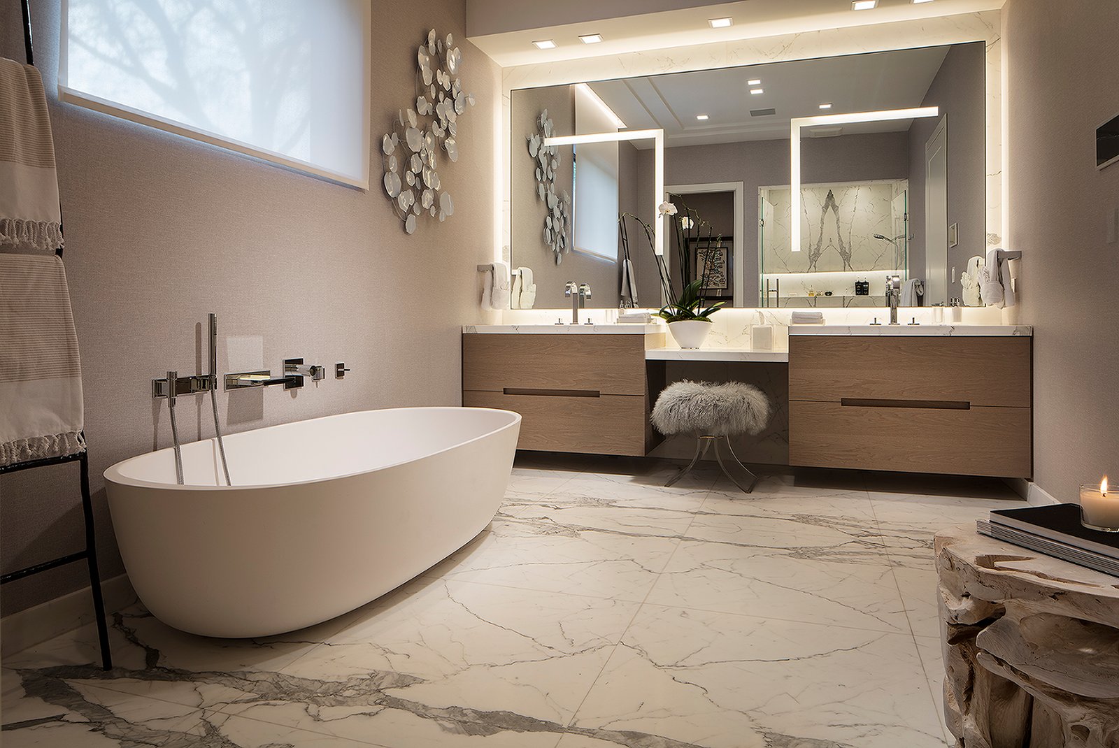 Villa Andurina is a modern Coral Gables residence defined by layered natural textures, custom window treatments, and tailored upholstery. Ripplefold linen sheers enhance double-height spaces with light and elegance, while premium wallcoverings and bespoke furnishings add warmth and depth. A neutral palette of greige and taupe unifies the design, creating a serene, timeless interior that reflects refined craftsmanship and luxury living