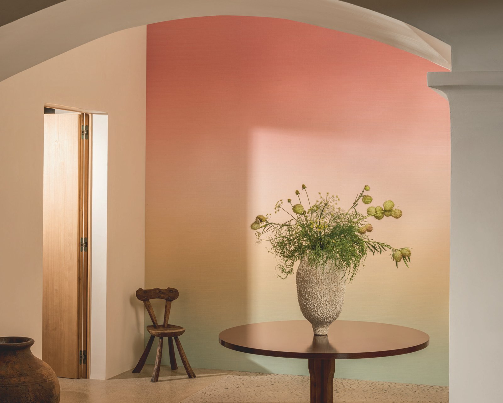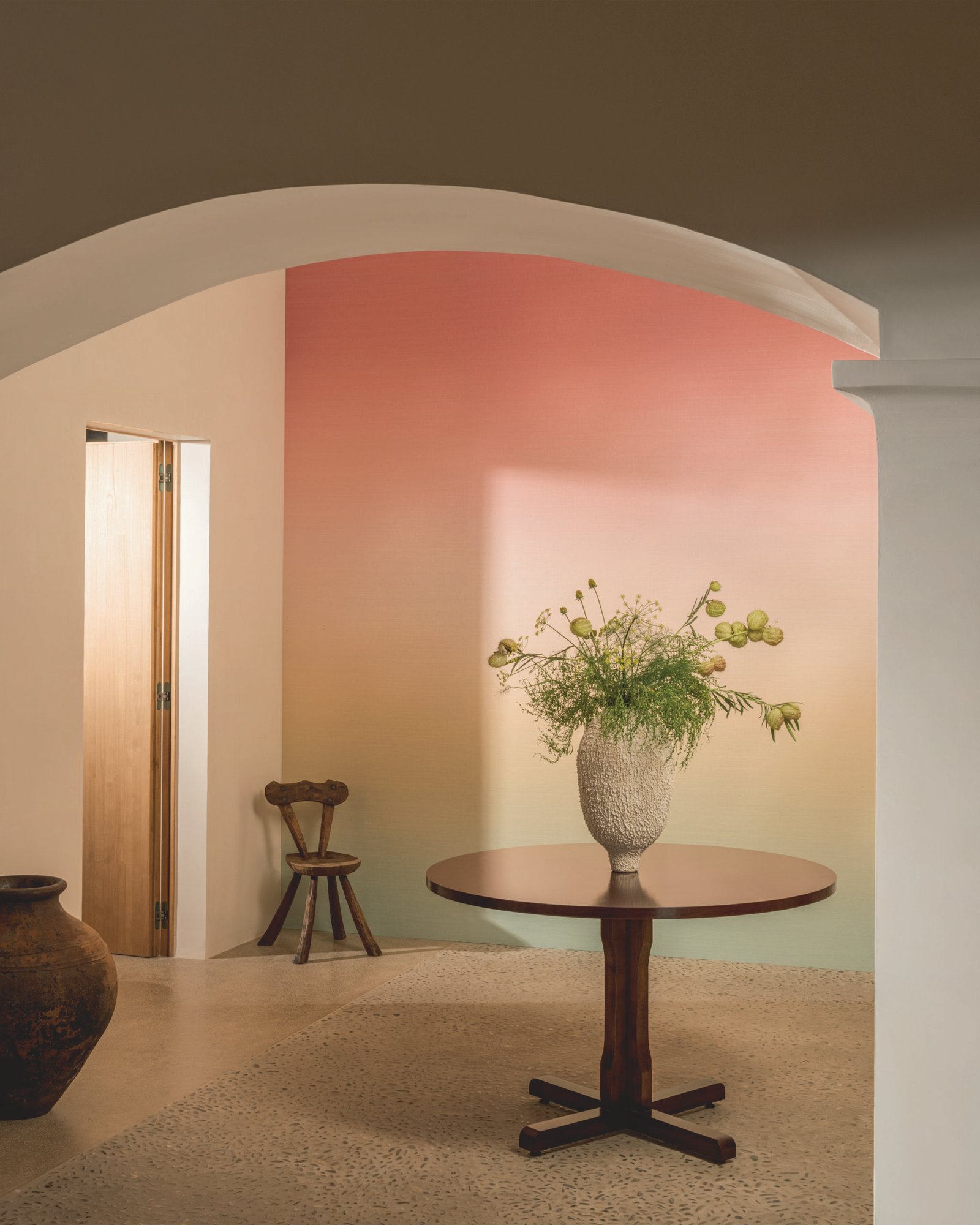 A wallcovering with an organic texture and contemporary finish, offering visual depth and refined character. Its artistic design provides a modern, balanced backdrop ideal for interiors with a minimalist or natural aesthetic.