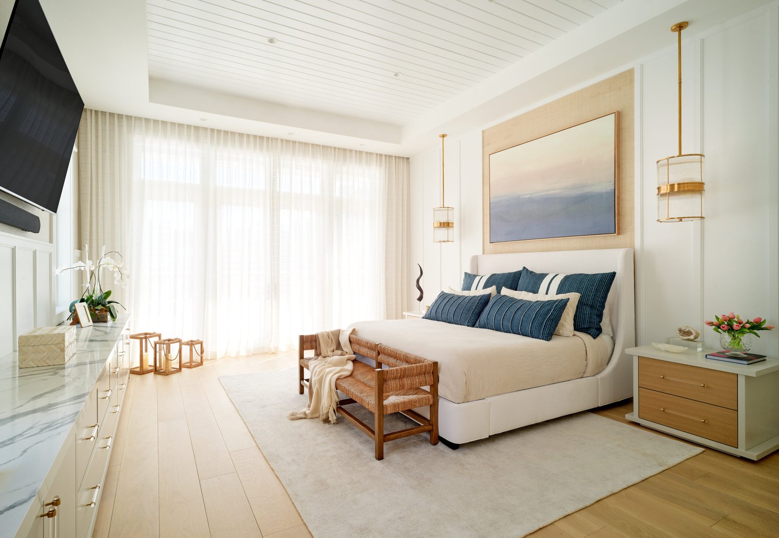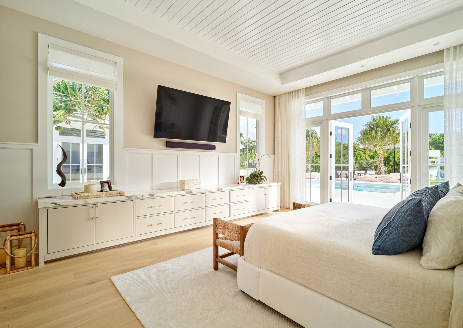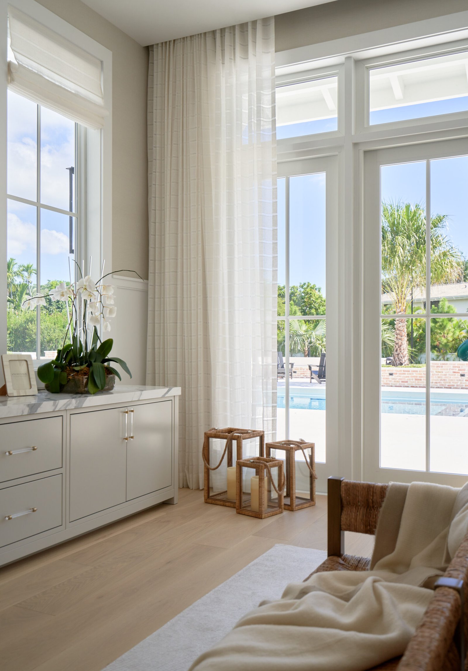 The South Miami Residence showcases IDS Design Corp’s signature refined coastal aesthetic, blending modern sophistication with livable comfort. By layering luxury window treatments, such as motorized linen sheers and custom Roman shades, with natural grasscloth wallpapers, the design maximizes light and architectural flow throughout the home. Every detail—from the serene, spa-like primary suite to the durable, high-performance finishes in the bathrooms—reflects a timeless, neutral palette dedicated to elevated interior craftsmanship.